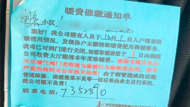为明晰解整体处境,助办拨打了中石化绿源地热能(山东)开辟有限公司的电话。使命职员显露,因牟姑娘家未交取暖费,但也未举办报停,于是就张贴了一张催费闭照单,视为供暖户,未封闭阀门。当助办询查为何没封闭阀门却正在闭照单上写明已封闭时,对方显露必要上报带领照料。